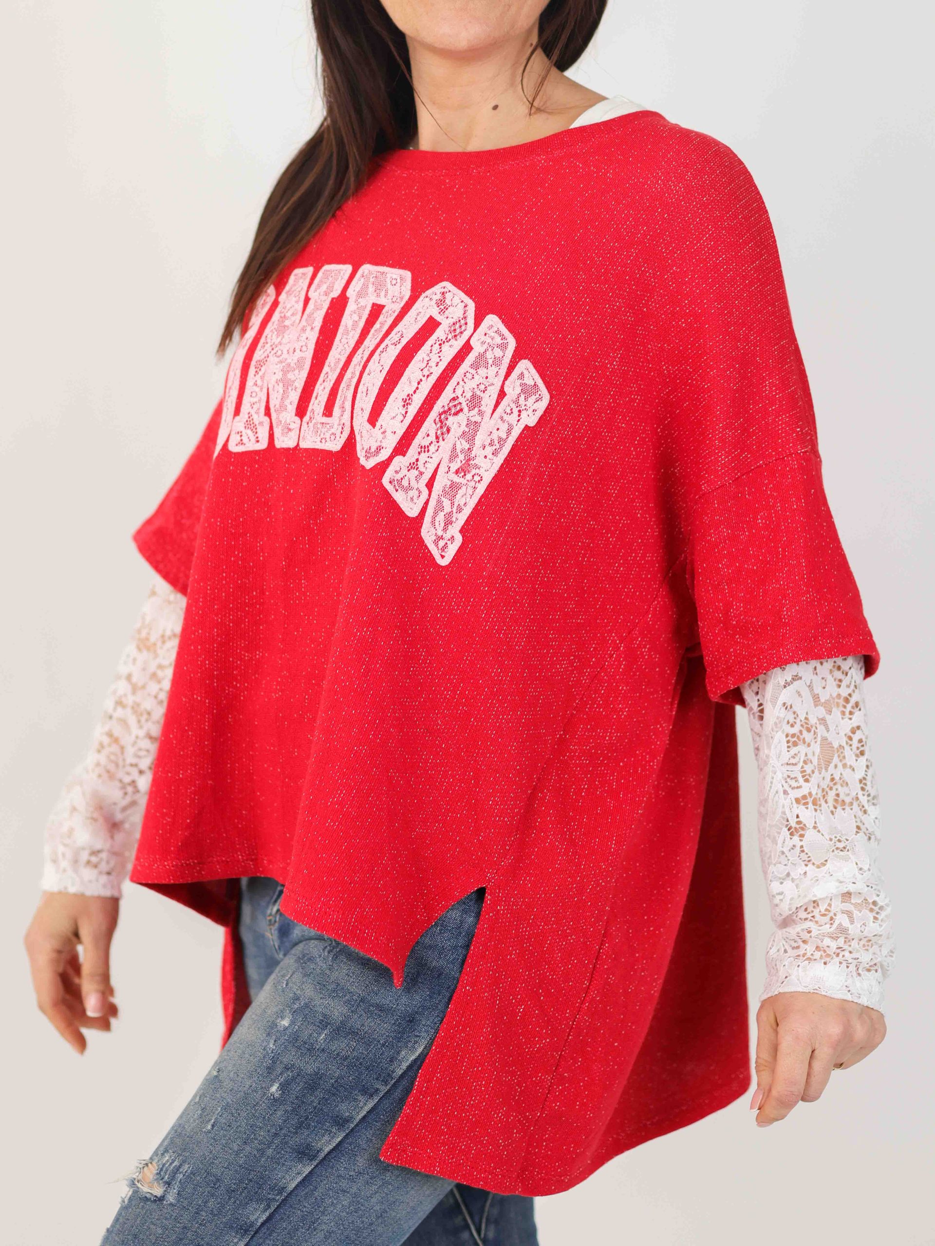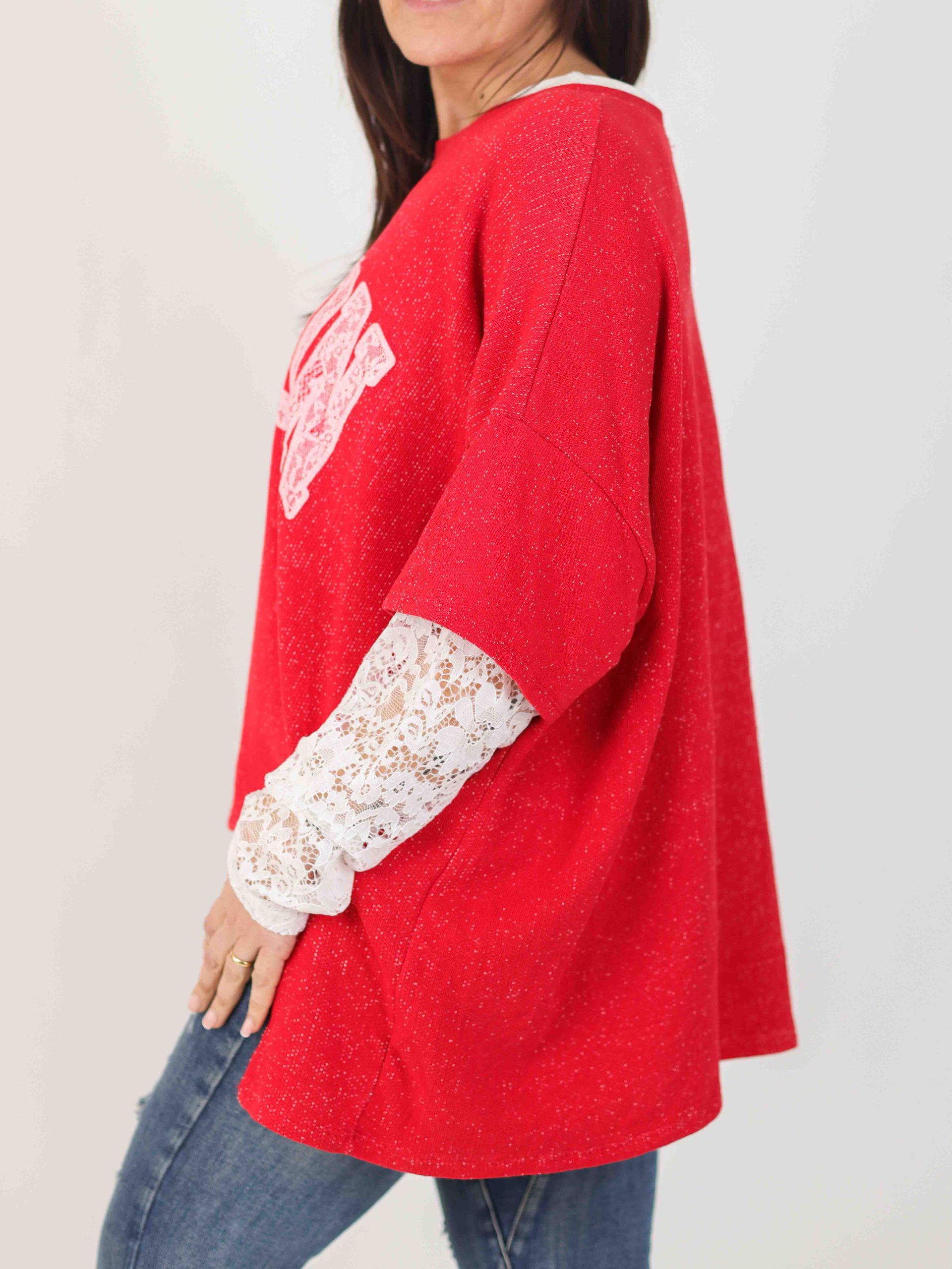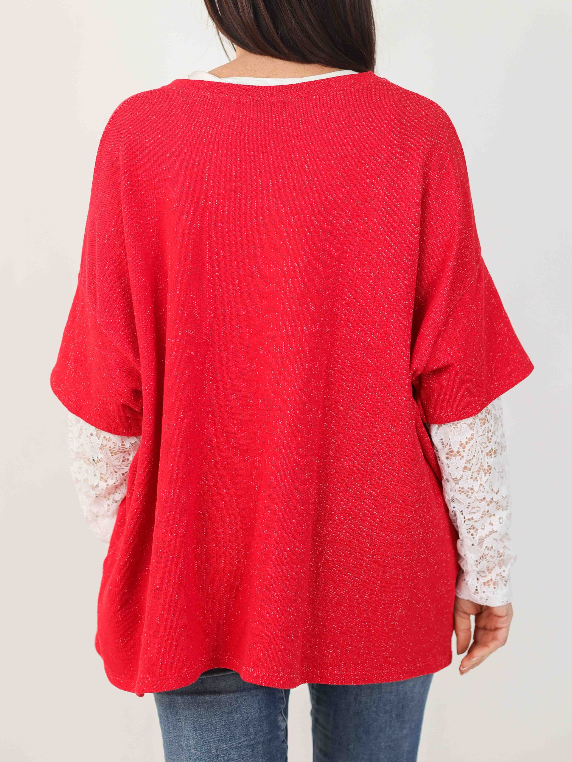 Jersey para mujer con mangas de encaje, ideal para combinar con diferentes prendas y un fondo de armario perfecto. Disponible en varios colores.